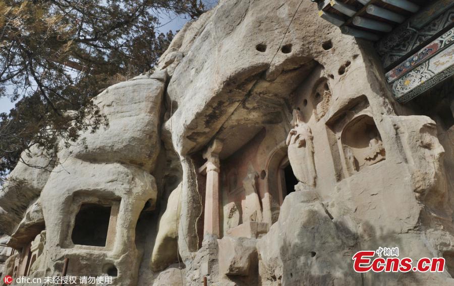 Signatures and graffiti left by unruly tourists cover the walls at Tianlong Mountain grotto in Taiyuan City, the capital of North China’s Shanxi Province. The grotto, with a history of 1,000 years, has begun renovations and cleaning to minimize the damage. (Photo/IC)