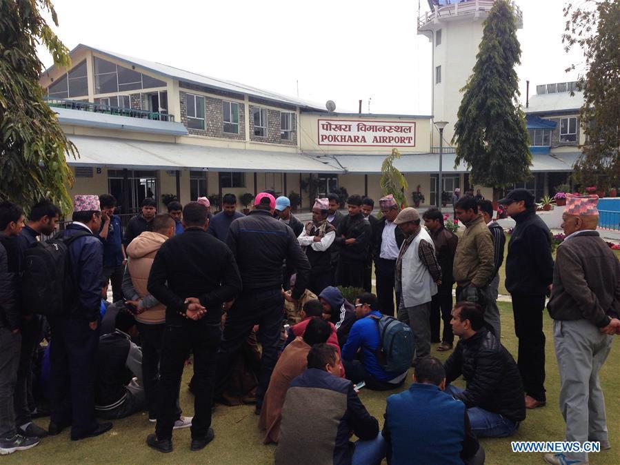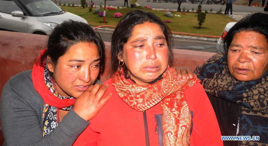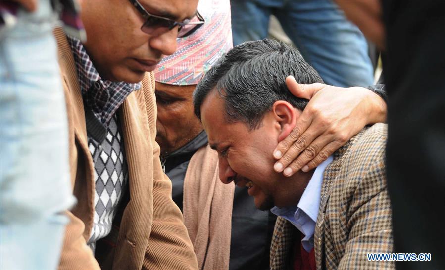 Family members and relatives of the victims cry after hearing the information about the missing aircraft at the airport in Pokhara, Nepal, Feb. 24, 2016. A missing aircraft of Tara Air has been found crashed in Myagdi district, some 300 km off the capital, killing all 23 people on board. (Photo: Xinhua/Krishnamani Baral)