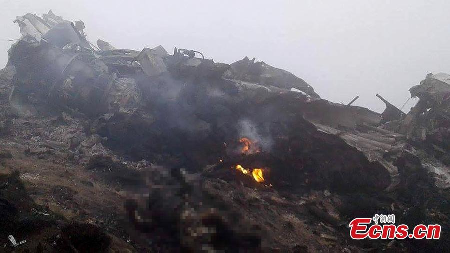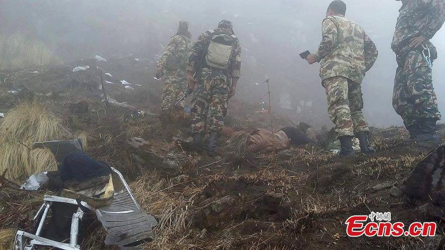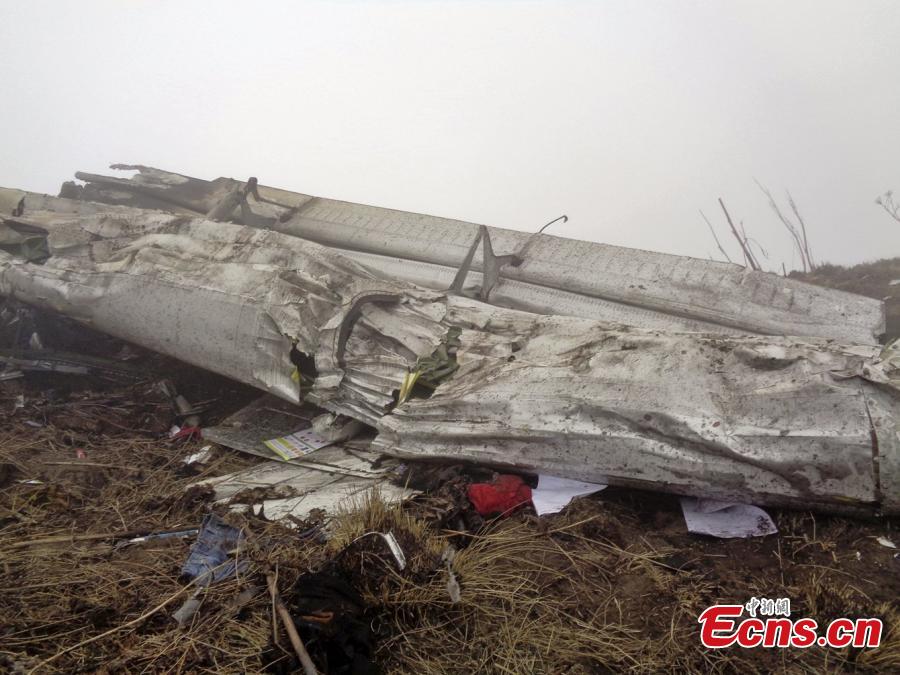 Wreckage of the Twin Otter plane is seen at the crash site near Dana village at Myadi district of Nepal on Feb. 24, 2016. An aircraft of Tara Air was found crashed Wednesday in Nepal's Myagdi district, some 300 km off the capital, killing all 23 people on board, police said. Two foreigners including a Hong Kong resident surnamed Mak and Kuwaiti national were among the 23 victims. (Photo/CFP)