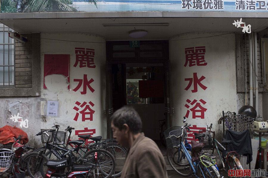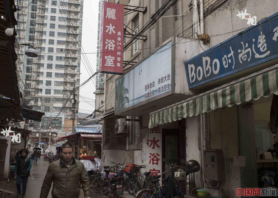 Located in the southern part of Shanghai, Lishui Bathhouse has been dwarfed by the new skyrocketing buildings of the bustling business center. (Photo / China.com.cn)