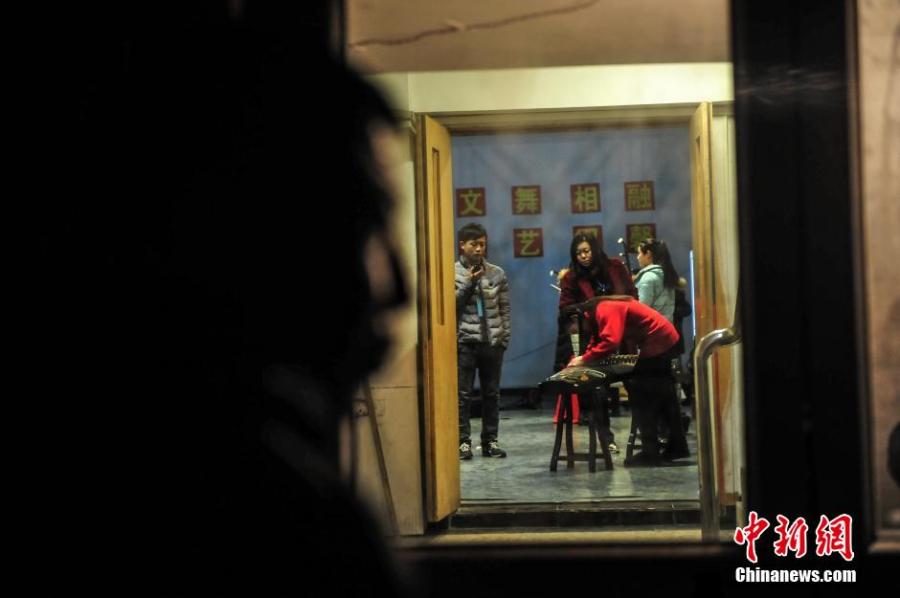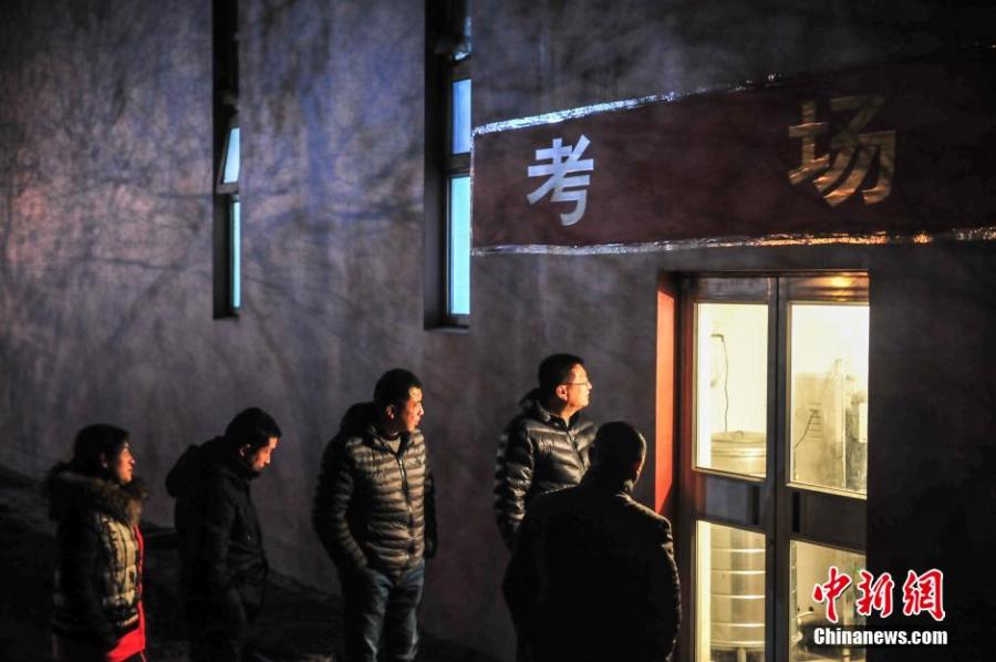 Parents wait as their children sit entrance exams for art majors at a university in Rizhao City, East China’s Shandong Province, Feb. 25, 2016. A large number of applicants means the university has been forced to run nighttime entrance exams. In many cities, parents have to accompany their children to prepare for and sit entrance exams. (Photo/CFP)