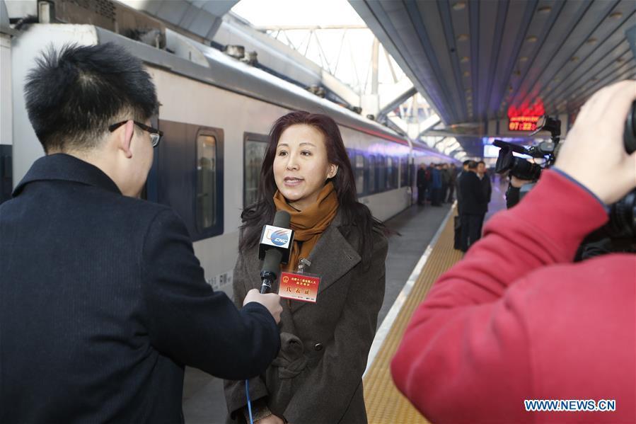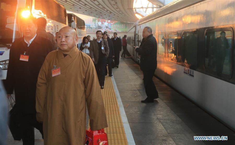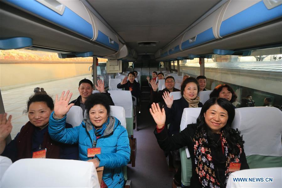 Deputies to the 12th National People's Congress (NPC) from north China's Inner Mongolia Autonomous Region get on a vehicle after they arrive at Beijing West Railway Station in Beijing, capital of China, March 2, 2016. The fourth annual session of the 12th NPC will open on March 5. (Photo: Xinhua/Jin Liangkuai)