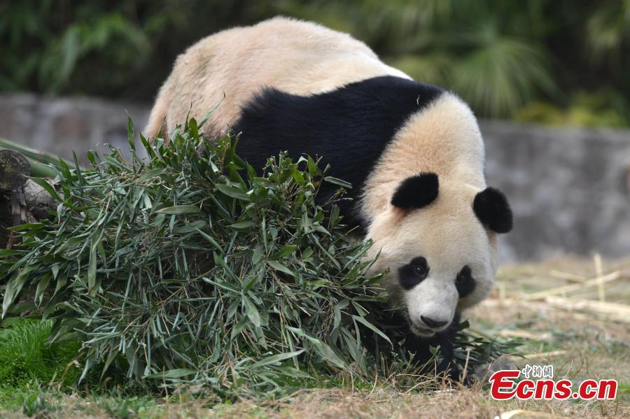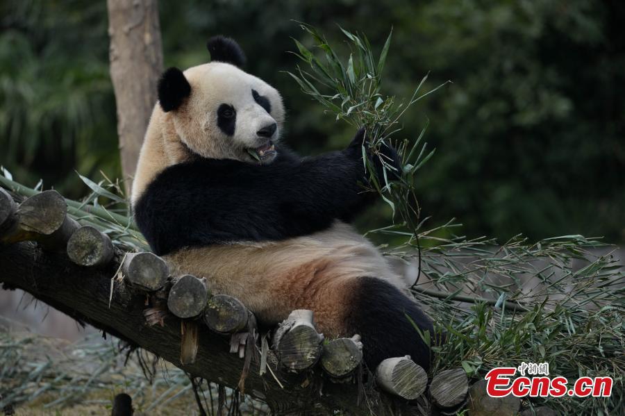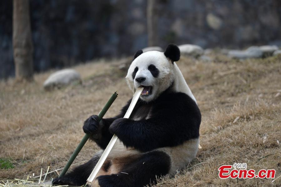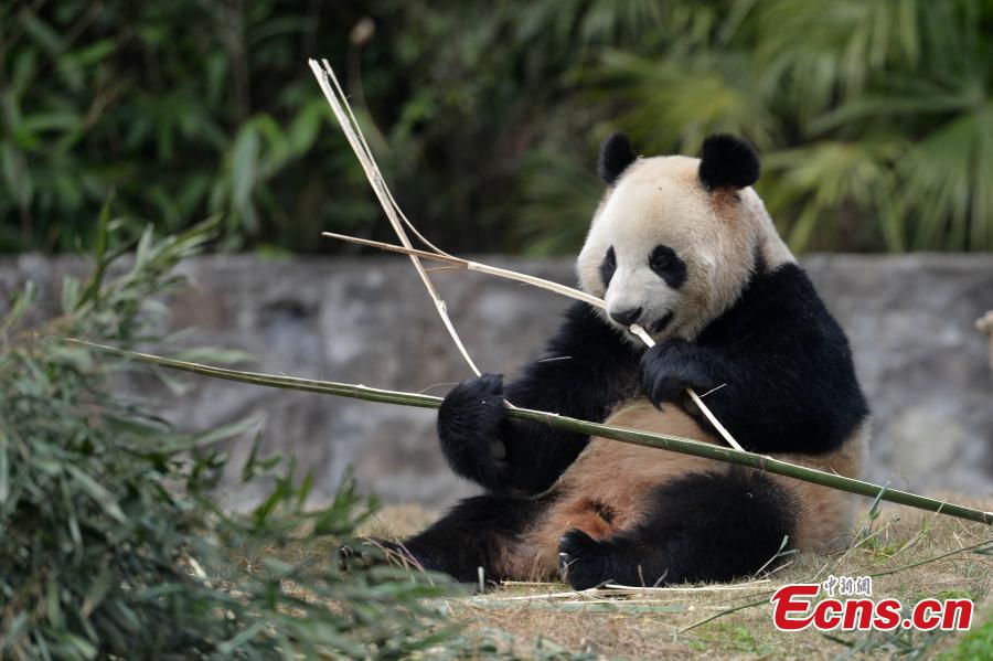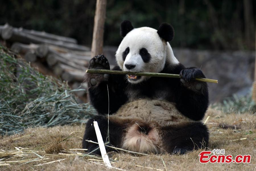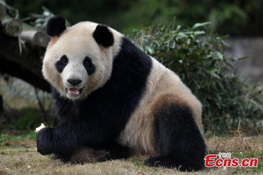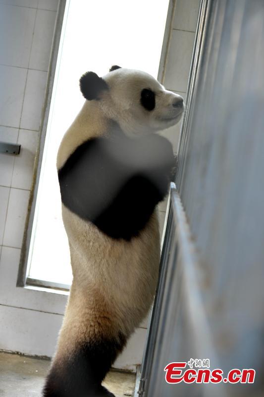 Giant panda Yuan Xin plays at the Dujiangyan base of China Conservation and Research Center for the Giant Panda. A pair of giant pandas Yuan Xin and Hua Ni will leave China for their new home in the Republic of Korea (ROK) on a 15-year lease. The pair's lease was put on the agenda after Chinese President Xi Jinping's visit to ROK in 2014, during which the two countries pledged cooperation in panda research, and the loan was agreed during Premier Li Keqiang's visit last year. (Photo: China News Service/Zhang Lang)