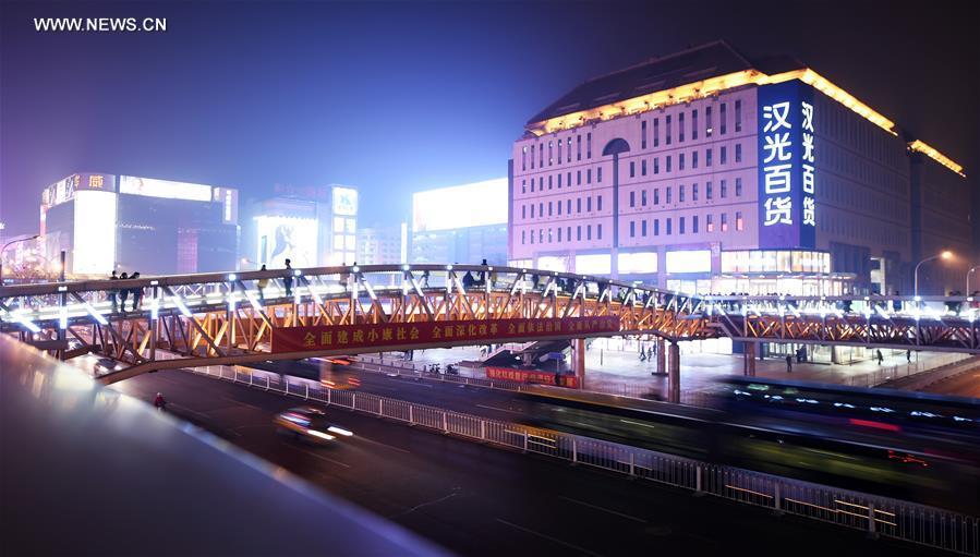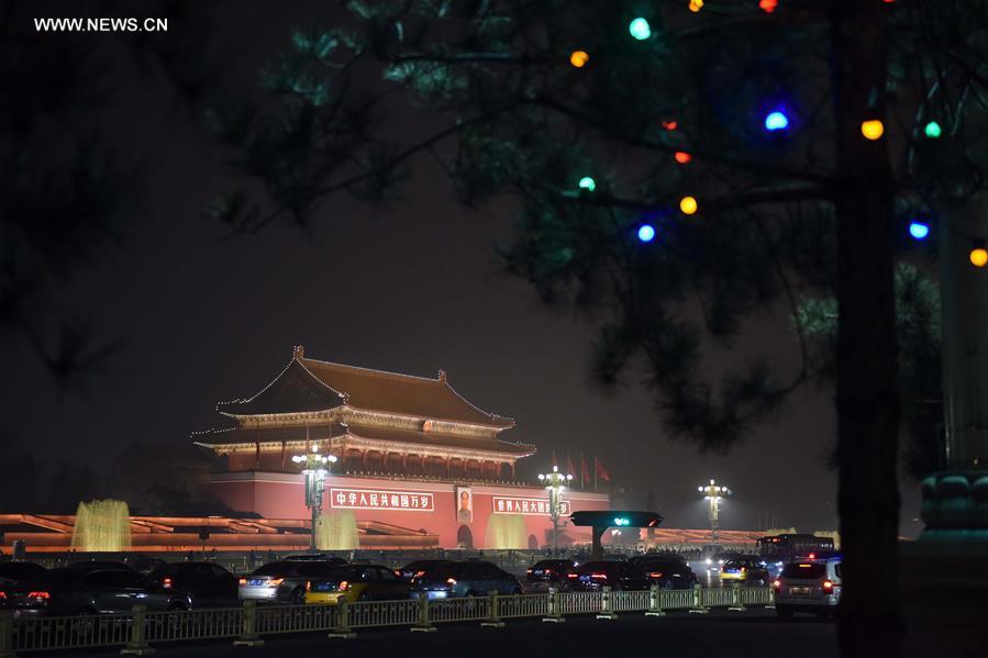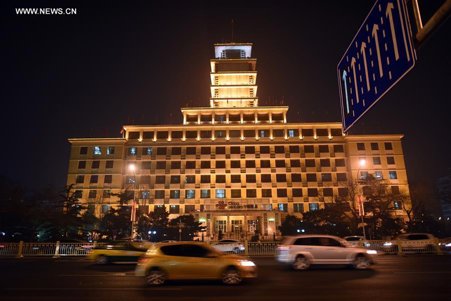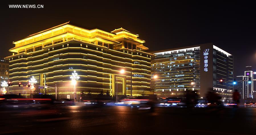 Photo taken on March 3, 2016 shows the illuminated buildings near Xidan crossroad in Beijing, capital of China. According to the Municipal Commission of City Administration and Environment, landscape lighting of buildings on the Tiananmen Square and along the Chang'an Avenue will be lit up from 6:25 p.m. to 11 p.m. between March 3 to 6 as in major festivals. (Photo: Xinhua/Pan Yulong)