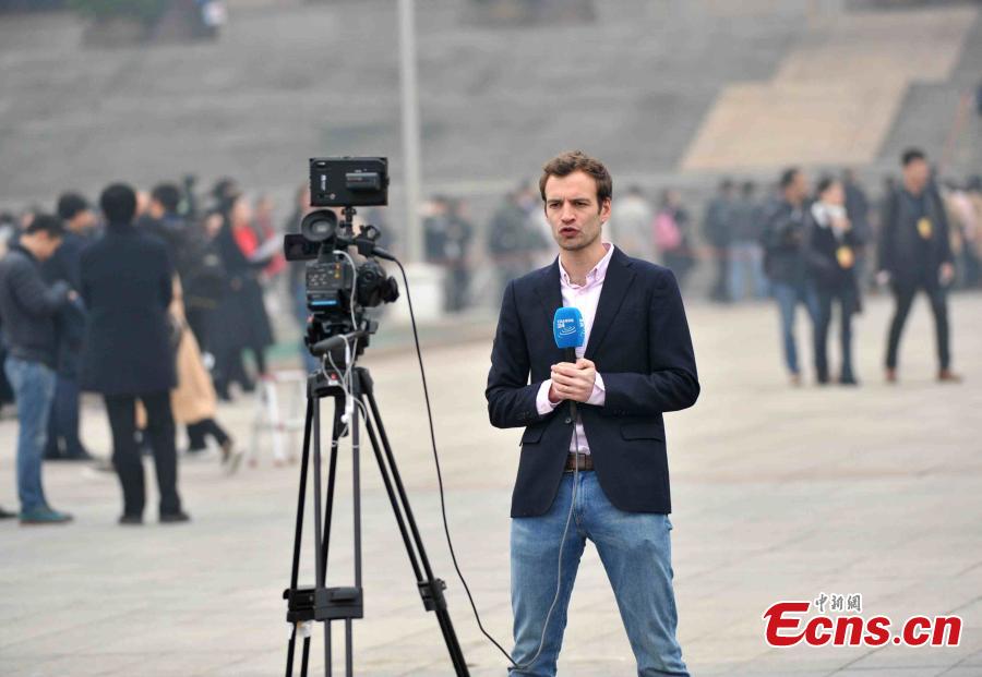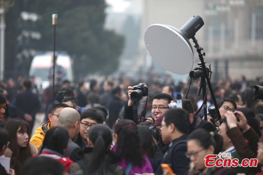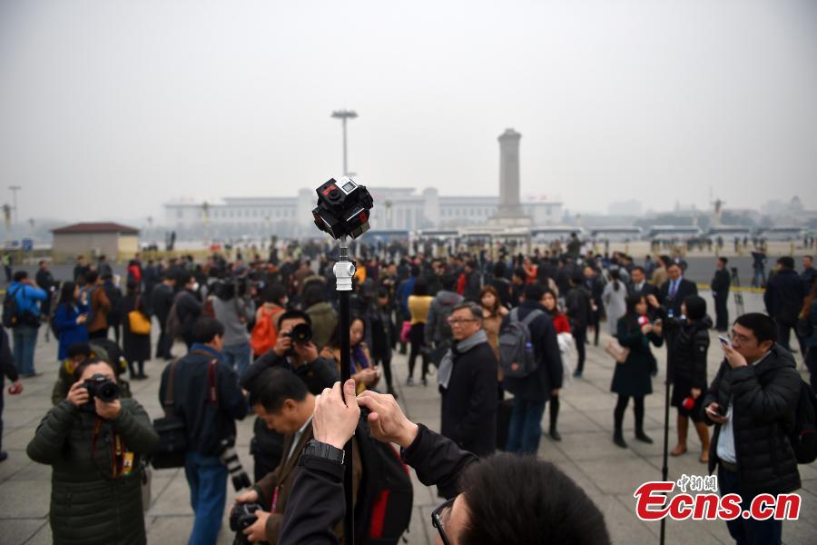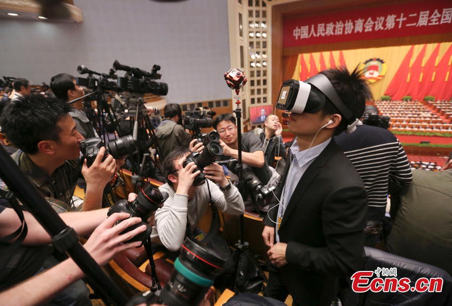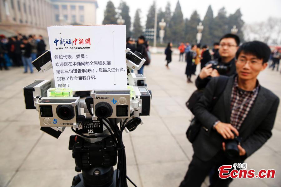 Equipment used by China News Service to report the Fourth Session of the 12th CPPCC National Committee in Beijing, March 3, 2016. (Photo: China News Service/Tang Yanjun)