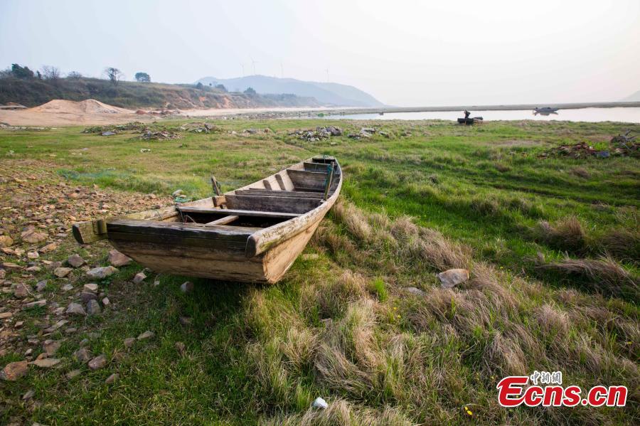 Water level drops and a dried-out plain stretches at Poyang Lake, the largest freshwater lake in China, in East China’s Jiangxi Province, March 6, 2016. The water level at the Xingzi hydrological station was 9.85 meters on Sunday, far lower than levels in normal years. (Photo/CFP)