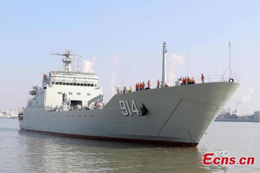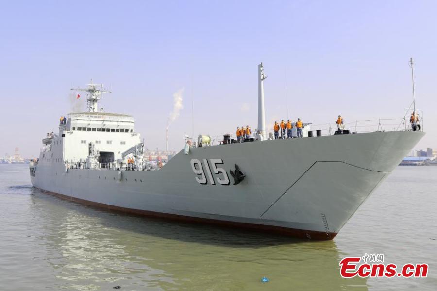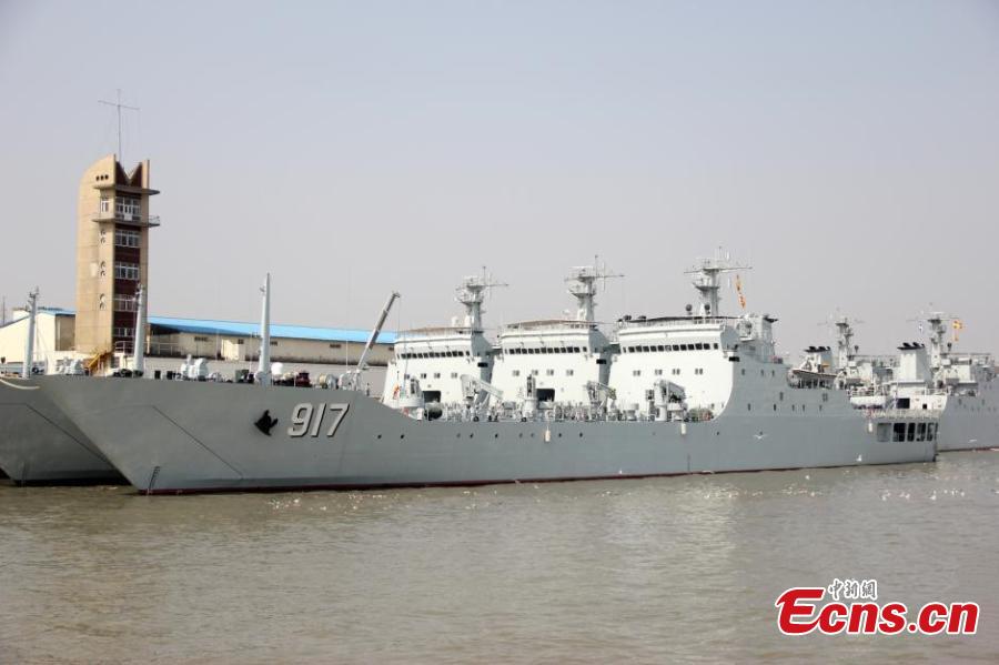 A commissioning, naming and flag-presenting ceremony for three new amphibious landing ship/tanks (LSTs) is held at a naval port of the East China Sea Fleet under the Chinese PLA Navy, March 7, 2016. The three ships - Wuyishan, Zulaishan and Wutaishan - all have a full-load displacement of 5,000 tons and are mainly responsible for transporting soldiers and maritime rescue. (Photo: China News Service/Zhou Pengcheng)