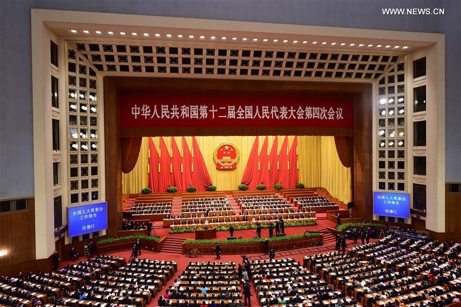 The second plenary meeting of the fourth session of China's 12th National People's Congress is held at the Great Hall of the People in Beijing, capital of China, March 9, 2016. (Photo: Xinhua/Liu Junxi)