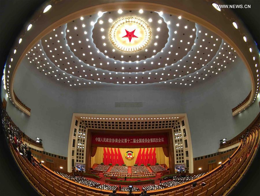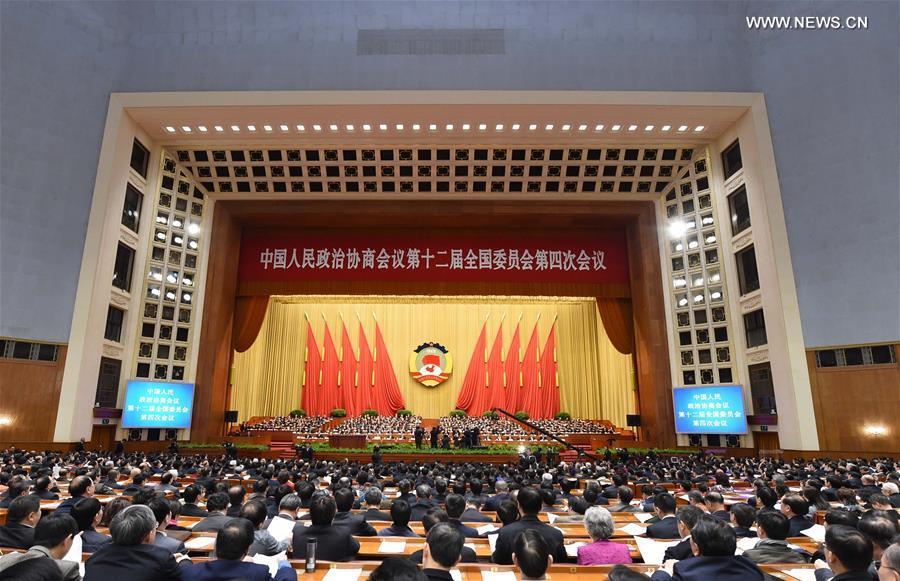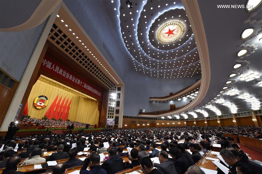 The second plenary meeting of the fourth session of the 12th National Committee of the Chinese People's Political Consultative Conference is held at the Great Hall of the People in Beijing, capital of China, March 10, 2016. (Photo: Xinhua/Yang Zongyou)