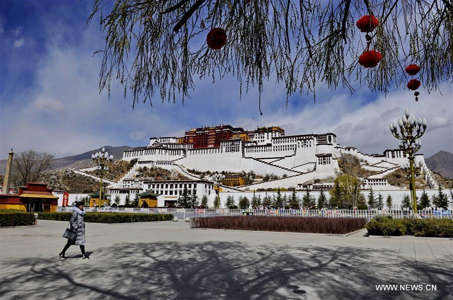 A citizen walks past the square of the Potala Palace in Lhasa, capital of southwest China's Tibet Autonomous Region, March 10, 2016. Spring is coming in Lhasa. (Photo: Xinhua/Zhang Rufeng)