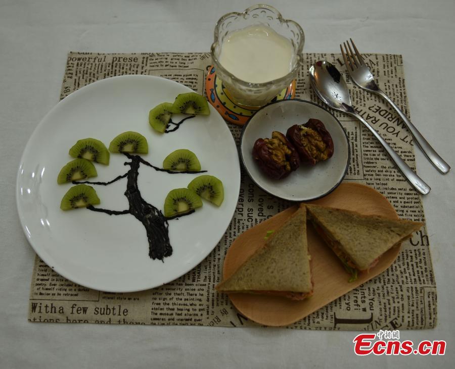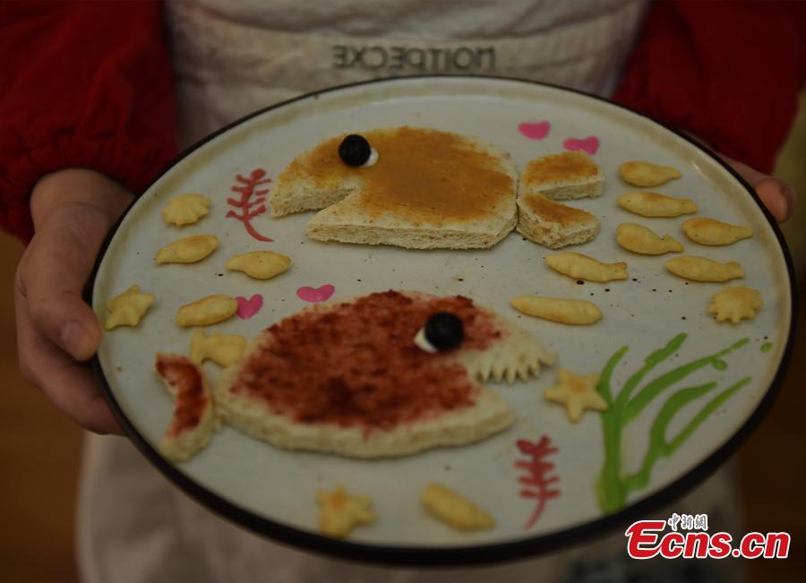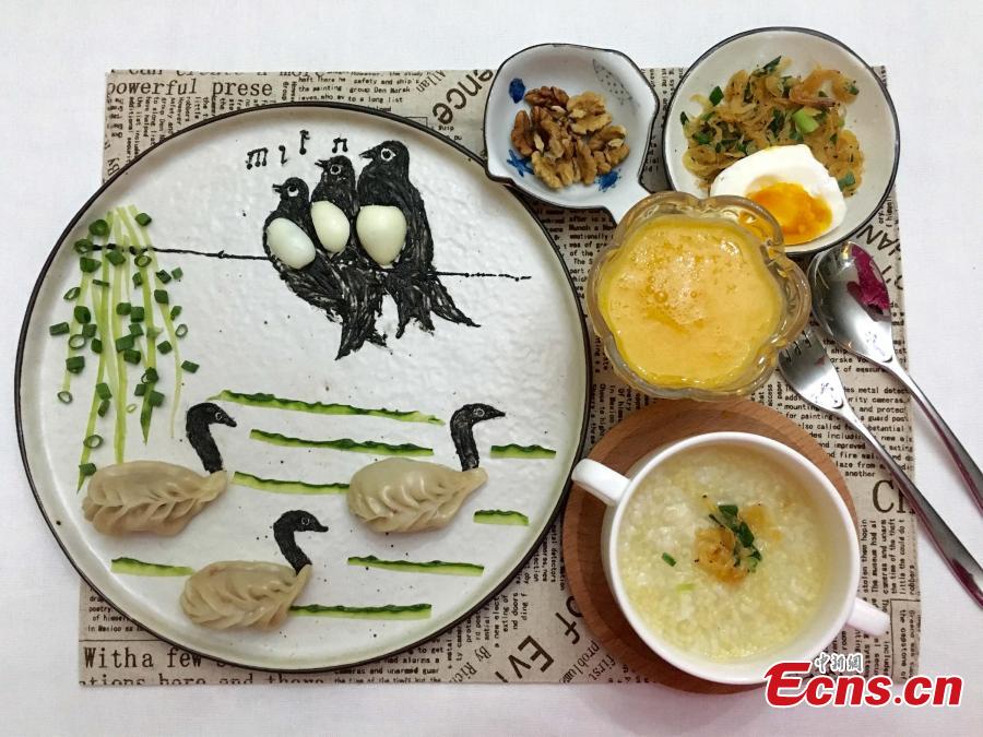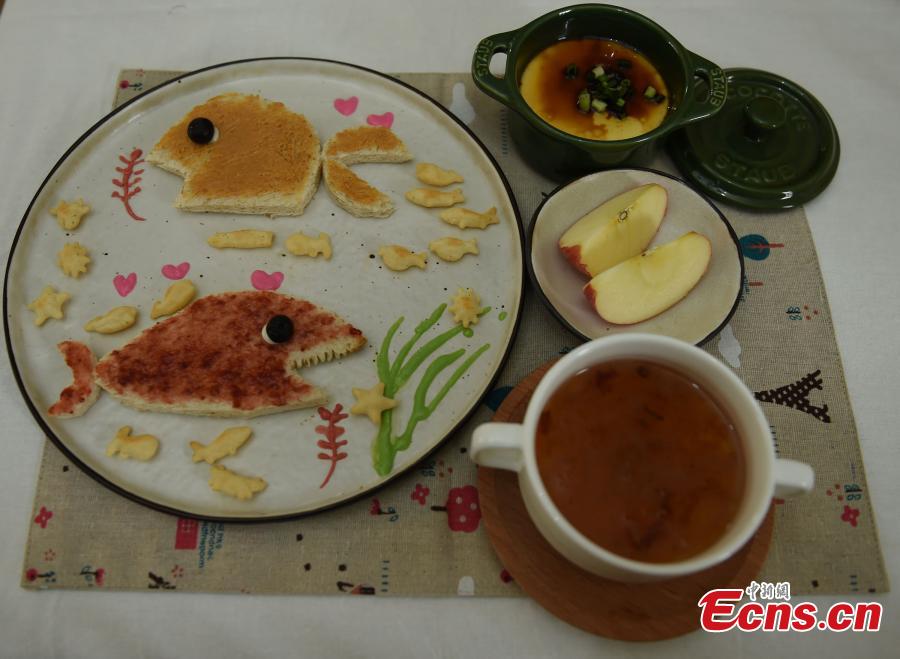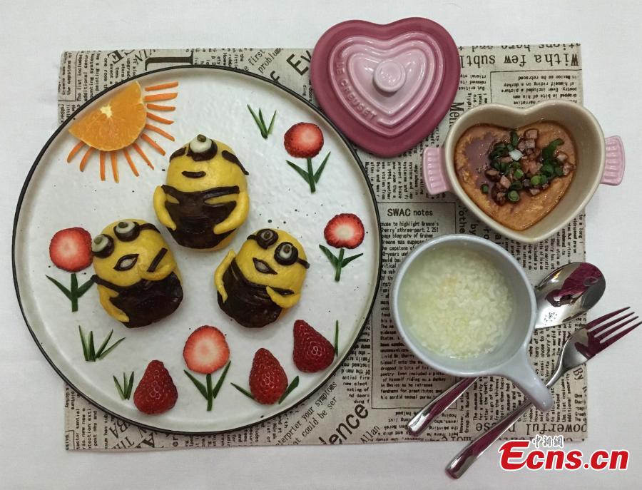 The photo taken on March 10, 2016 shows the creative breakfast made by Wang Jing, a housewife from southwest China's Chongqing Municipality. Wang Jing resigned from a foreign company at the beginning of 2015 and started to make creative meals for her daughter. Since then, she has made 232 different types of breakfast dishes. (Photo provided to China News Service)