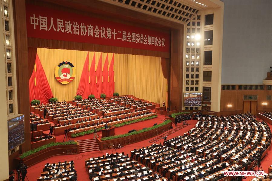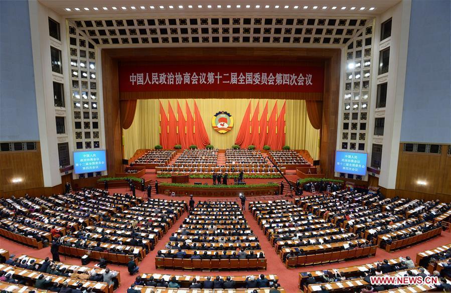 The third plenary meeting of the fourth session of the 12th National Committee of the Chinese People's Political Consultative Conference is held at the Great Hall of the People in Beijing, capital of China, March 11, 2016. (Xinhua/Li He)