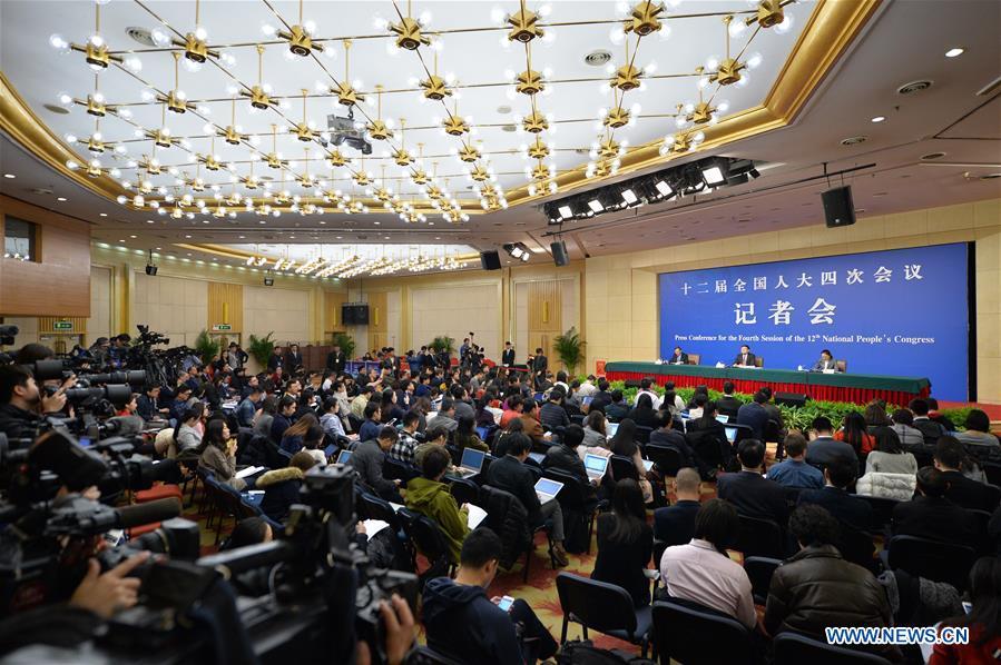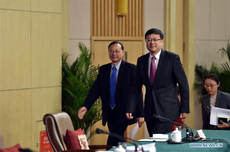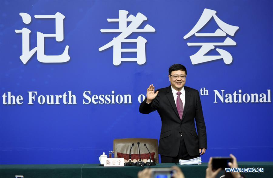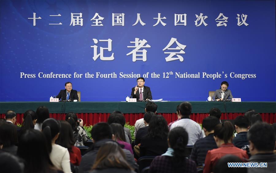 Chinese Minister of Environmental Protection Chen Jining gives a press conference on how to promote environmental protection on the sidelines of the fourth session of China's 12th National People's Congress in Beijing, capital of China, March 11, 2016. (Xinhua/Li Xin)