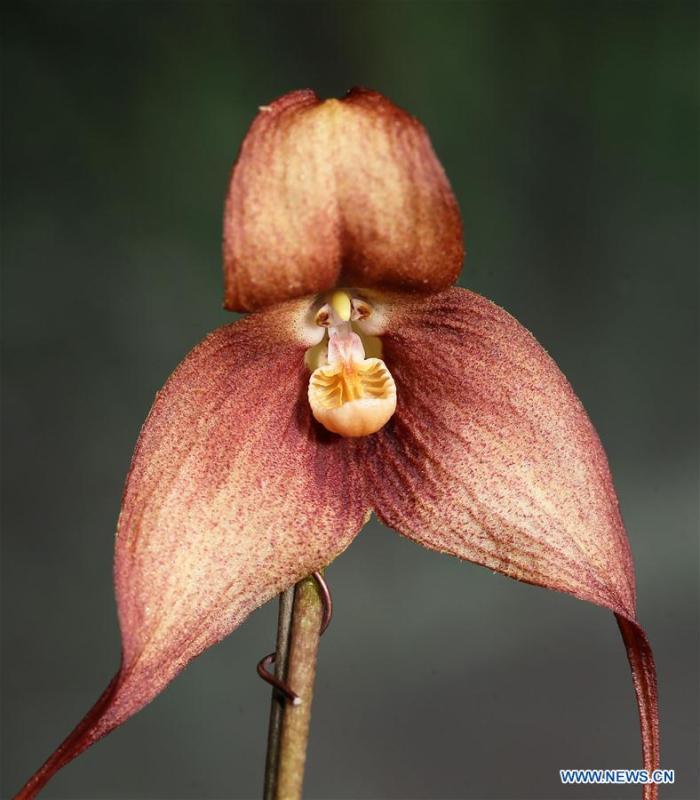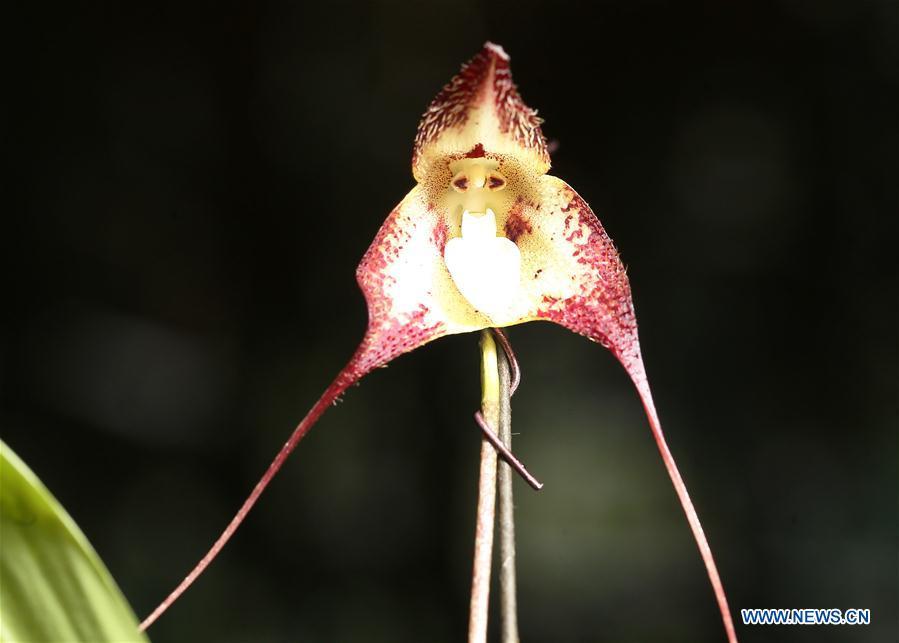 Photo taken on March 11, 2016 shows Dracula simia, or monkey orchid, at the opening press conference of Taiwan International Orchid Show to be held in Tainan, southeast China's Taiwan. The Taiwan International Orchid Show 2016 will be held from March 12 to 21 in Tainan, at which the monkey orchid species imported from South America will be one of the highlights. (Xinhua)