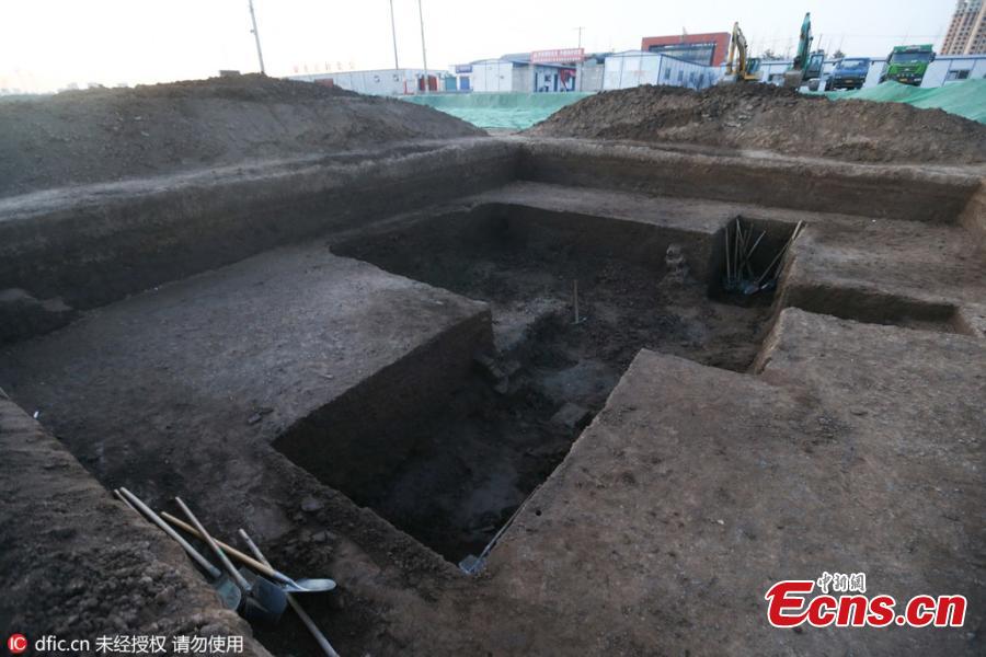 Tombs of Han Dynasty (206 B.C.–220 A.D.) are found at the construction site of Beijing’s second administrative center in suburban Tongzhou, March 13, 2016. Archaeologists suspect the tombs were robbed and security measures have been bolstered as excavation is going on. Beijing is building a subsidiary administrative center in Tongzhou in a bid to cure "urban ills," including overpopulation, traffic congestion and smog. It is expected to relocate about 400,000 residents from the city center to the suburban district. (Photo/IC)