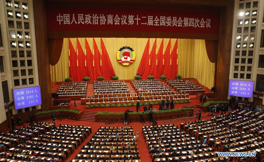 The closing meeting of the fourth session of the 12th National Committee of the Chinese People's Political Consultative Conference is held at the Great Hall of the People in Beijing, capital of China, March 14, 2016. (Photo: Xinhua/Yin Gang)