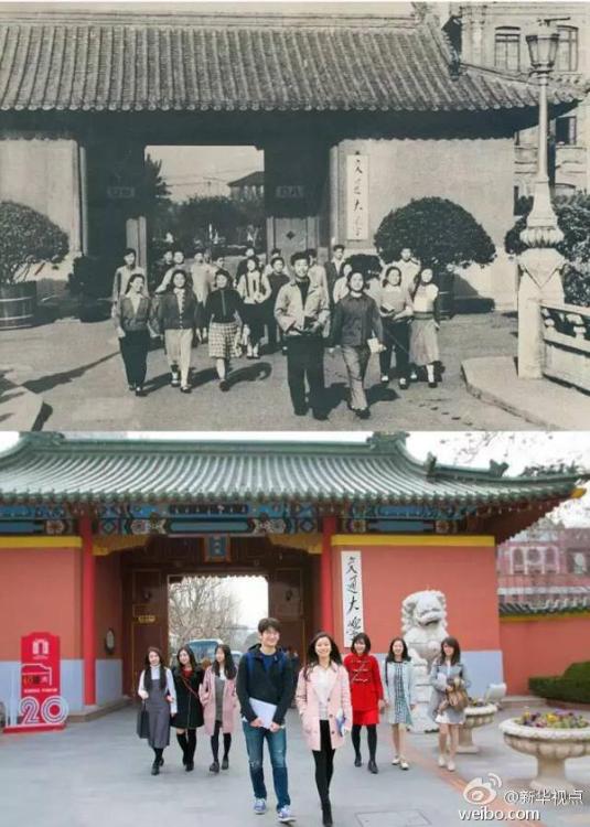 Shanghai Jiao Tong University (SJTU) has released a series of photos showing students from different periods posing for similar photographs at the same location or in similar contexts as the university celebrates the 120th anniversary of its founding. SJUT is a key university directly under the administration of the Ministry of Education (MOE) and co-constructed by the MOE and Shanghai Municipal Government. It began to recruit female students in 1927, a breakthrough at the time. (Photo provided by SJTU)