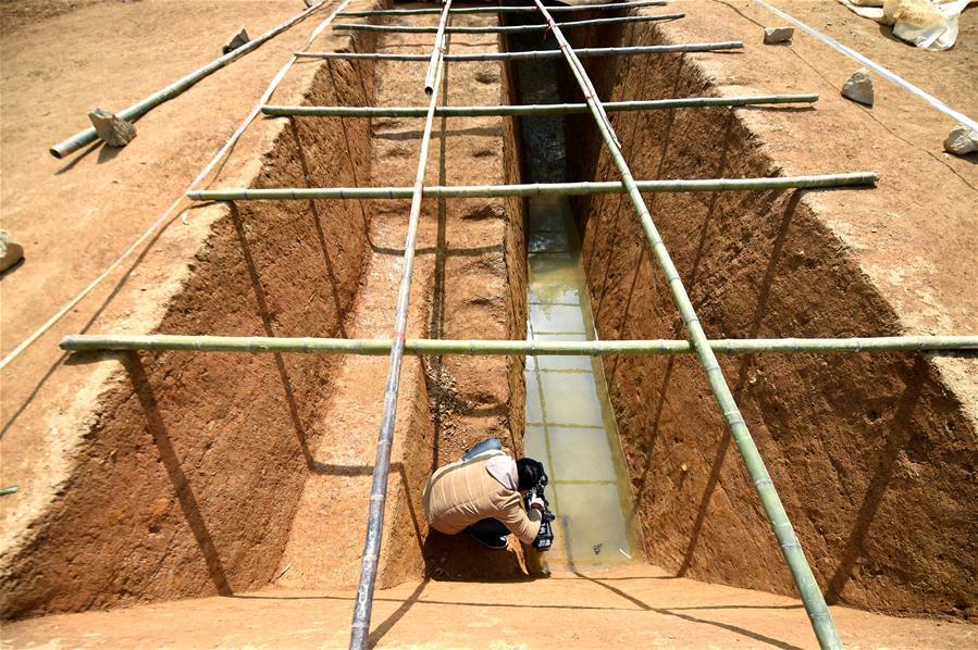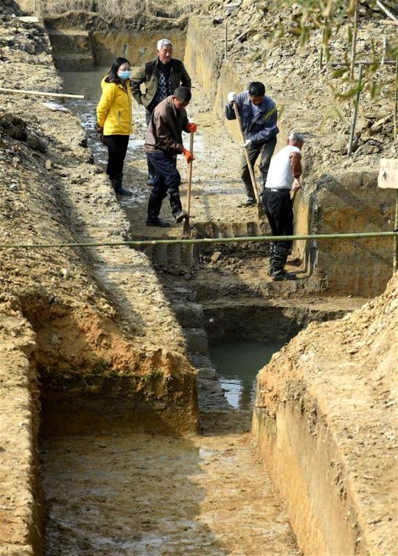 Photo taken on March 15, 2016 shows the dike relic at an excavation site of a large water project dating back about 5,000 years in Hangzhou, capital of east China's Zhejiang Province. Chinese archeologists have excavated 11 dikes, which are near to the ancient city of Liangzhu that existed about 4,500 to 5,300 years ago in Yuhang District of today's Hangzhou. The finding is the oldest large water system ever found in China, which is believed to have combined functions of flood control, transportation and irrigation. (Photo: Xinhua/Wang Dingchang)