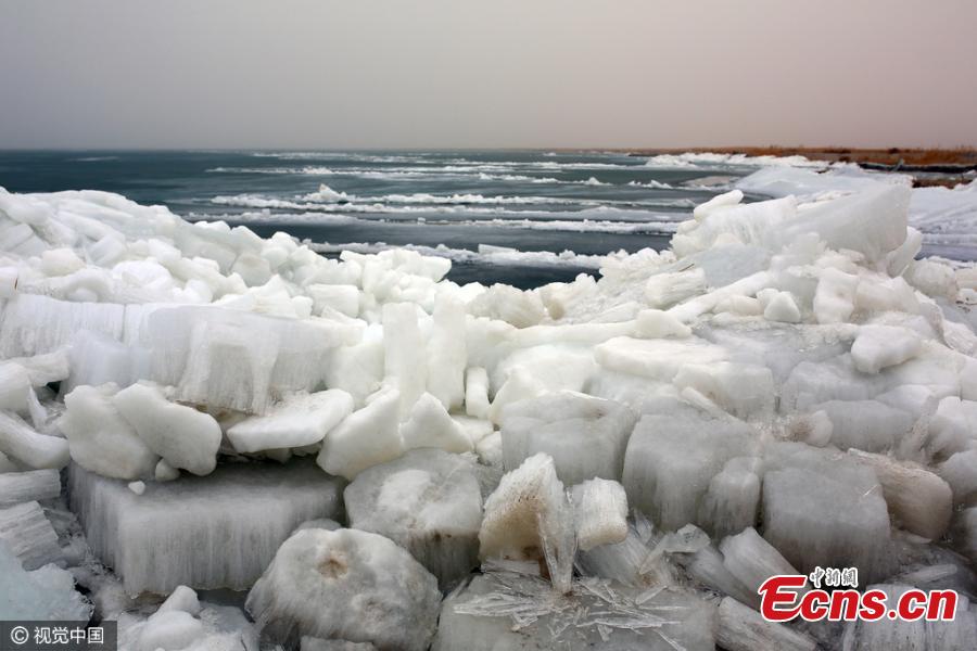 Ice jams form on the Bosten Lake in Bayingolin Mongol Autonomous Prefecture, Northwest China’s Xinjiang Uygur Autonomous Region, March 17, 2016. Wind drives ice to pile up along the shoreline during the spring break-up to from spectacular scenes extending for miles. Covering an area of about 1,200 square kilometers, it is the largest inland freshwater lake in China. (Photo/CFP)