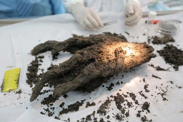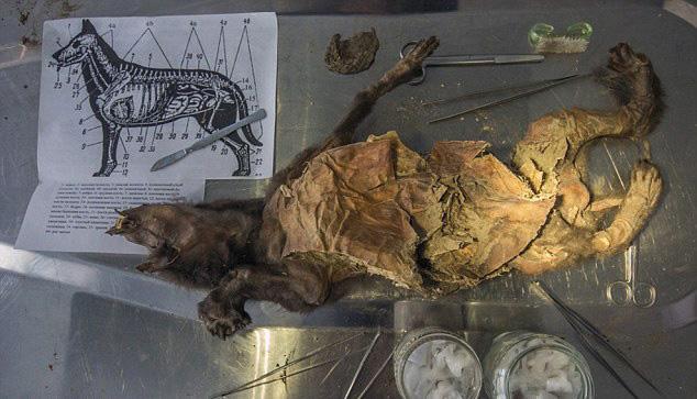 The mummified remains of an ancient puppy found near River Syalakh in Russia's Sakha Republic could be used to bring its species back from the dead after being frozen in time for almost 12,400 years. Controversial cloning guru Hwang Woo-suk has also taken samples from the remains in a bid to bring the extinct species back to life. A suspected sibling of the puppy was pulled from the same location near the village of Tumat four years earlier - in 2011 - dubbed Tumat Dog (pictured). It has since been subject to a post-mortem examination which revealed the litter may have been killed during a landslide. (Photo provided to China News Service)