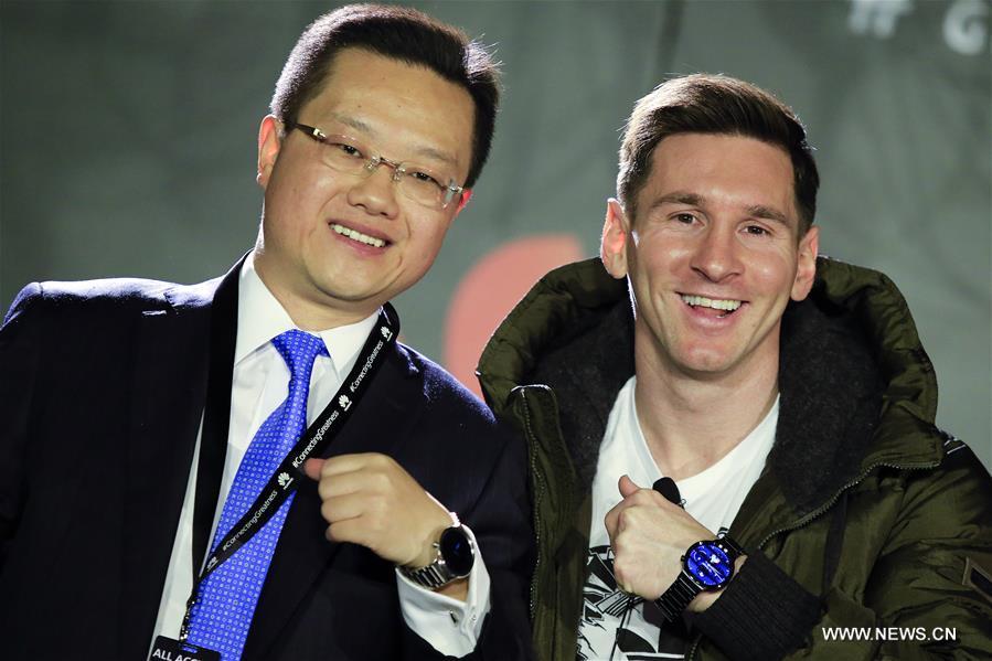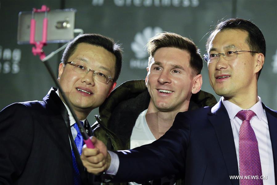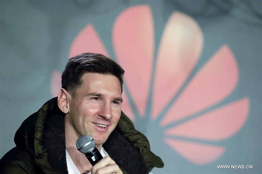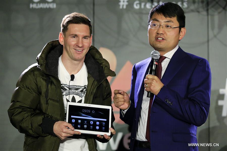 FC Barcelona's Argentinian forward Lionel Messi attends a press conference in which Huawei announces Messi's appointment as the company's latest Global Brand Ambassador in Barcelona, Spain, March 17, 2016. (Photo: Xinhua/Pau Barrena)