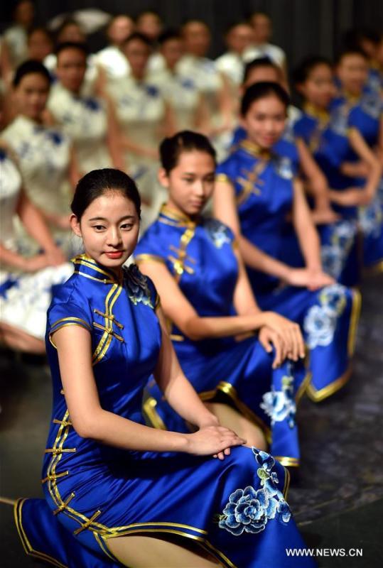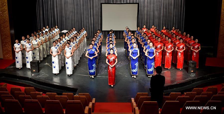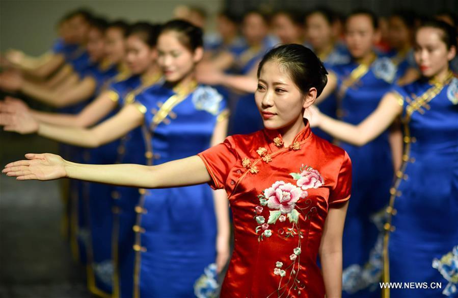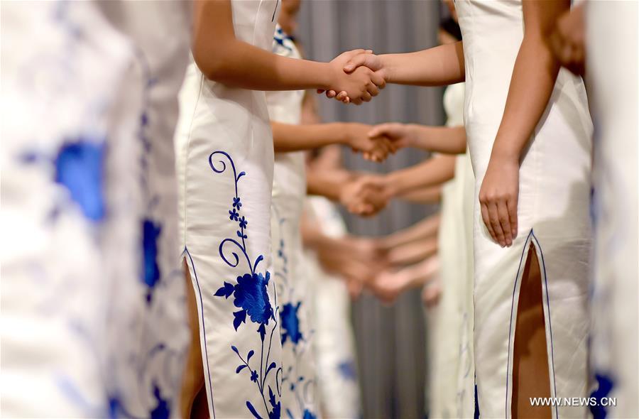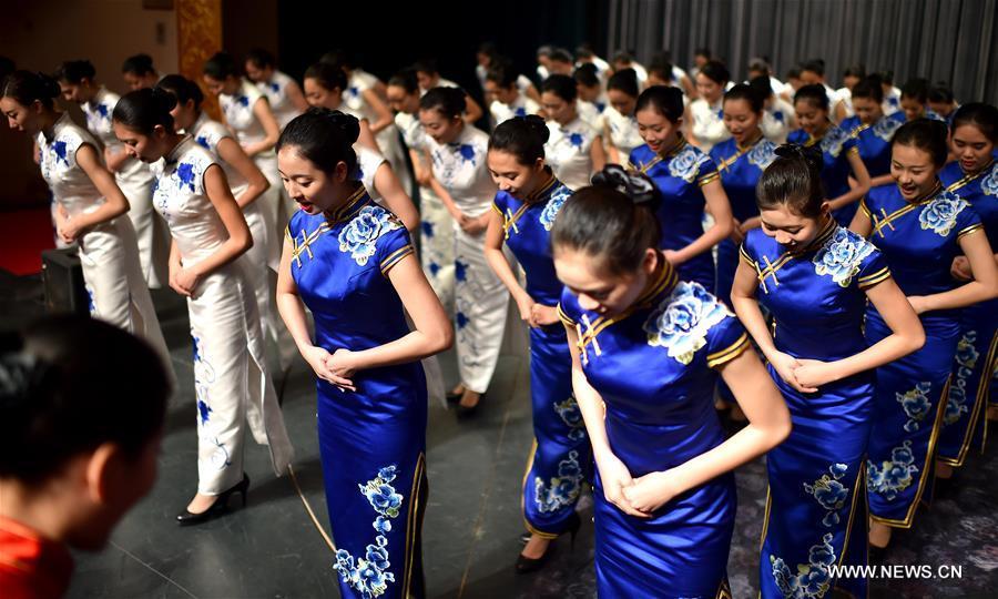 Miss Etiquettes practise for the coming Boao Forum for Asia (BFA) Annual Conference in Boao, south China's Hainan Province, March 18, 2016. The BFA will be held here from March 22 to 25. (Xinhua/Guo Cheng)
