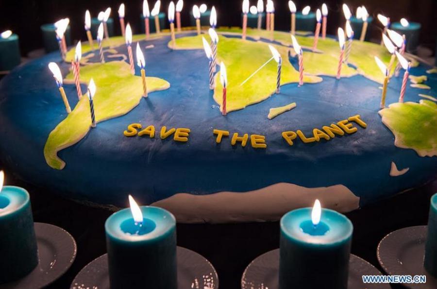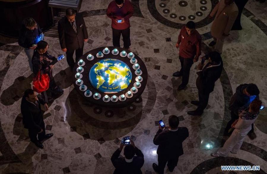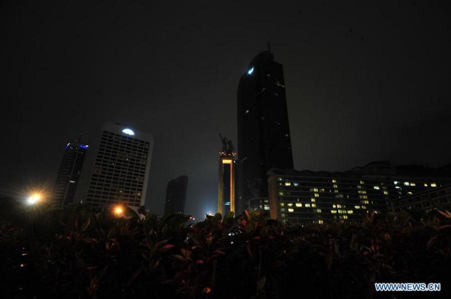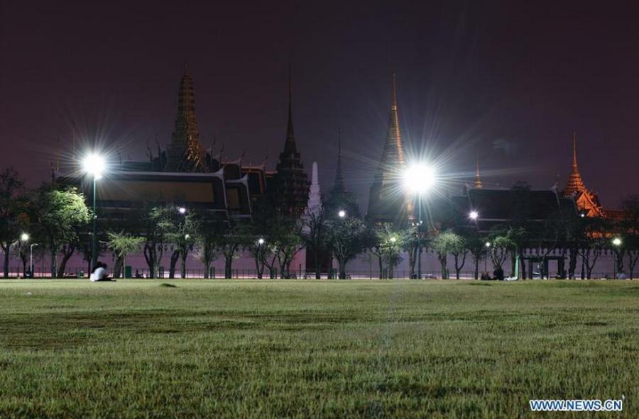 Photo taken on March 19, 2016 shows the Grand Palace during Earth Hour campaign in Bangkok, Thailand. (Photo: Xinhua/Li Mangmang)
