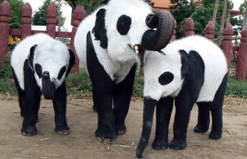 The bizarre result of the painting has sparked a series of online debates. Some criticized that the elephants are deprived of their uniqueness. Some commented that since both pandas and elephants belong to endangered animals, the elephants deserve no less public awareness than the pandas do.(Source: People's Daily Online)