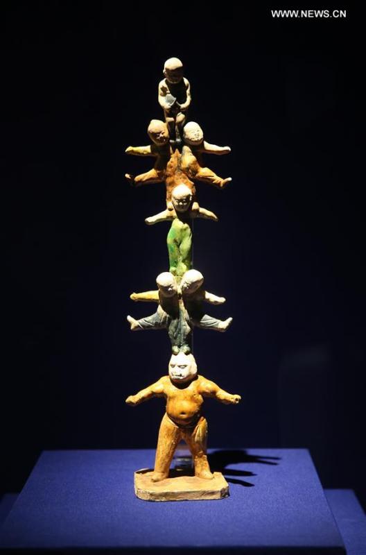 Tri-colored glazed pottery art works exhibited in Shaanxi (1/7)