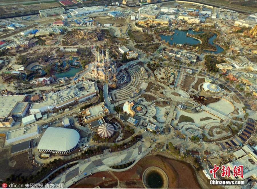 Aerial photo taken on March 25 shows Shanghai Disneyland Park in Chuansha New Town of Pudong New Area. Shanghai Disneyland tickets will go on sale on March 28, according to the official website.(Photo/IC)