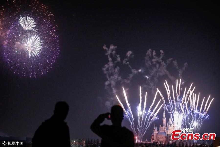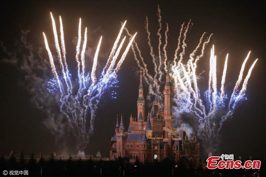 Shanghai Disneyland launches its first fireworks testing right behind the amazing Enchanted Storybook Castle.(Photo/CFP)