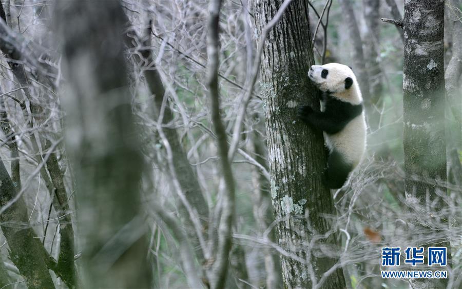 A wild Qinling panda climbs a tree in Daguping Village of Yueba Township in Foping County, northwest China's Shaanxi Province, March 28, 2016. There are estimated to be 345 Qinling pandas, a subspecies of the giant panda, living in the wild, according to China's fourth survey of giant pandas from 2011 to 2014. (Photo: Xinhua/Tao Ming)