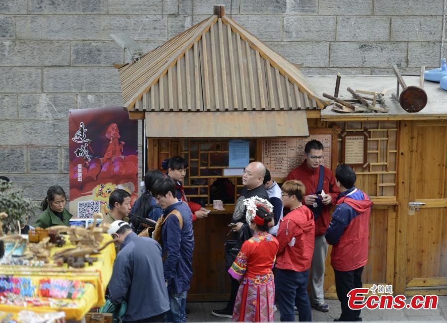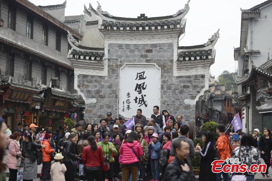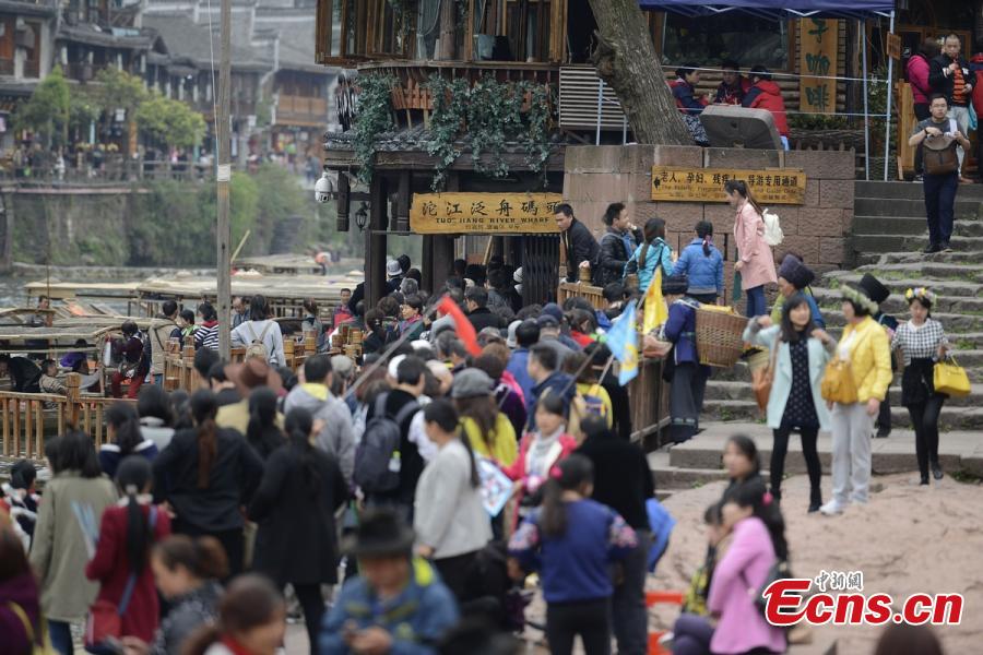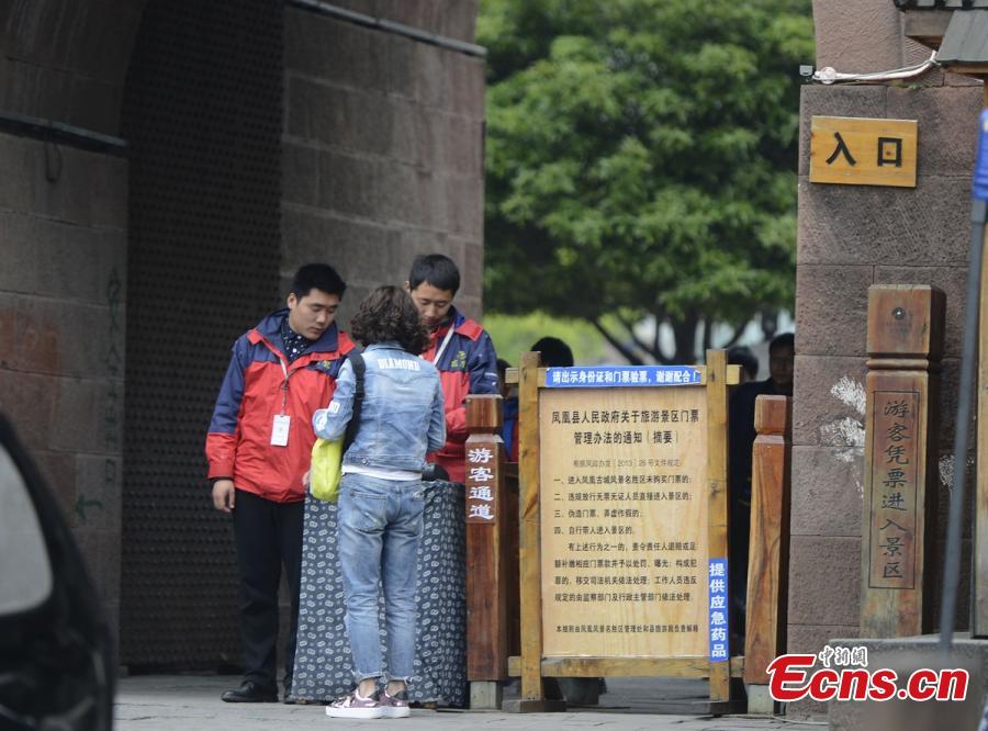 Tourists have their tickets checked at the entrance to the old town in Fenghuang County, Central China’s Hunan Province, March 28, 2016. The old town has made headlines in recent years for its controversial ticket policy, which local authorities say is to protect the town from overwhelming numbers of tourists but shop owners and small traders say is hurting their business. The old town says from April 10 it will stop checking tickets inside the town but will keep checking tickets at scenic spots. (Photo: China News Service/Yang Huafeng)