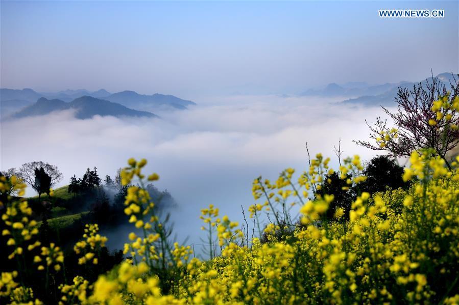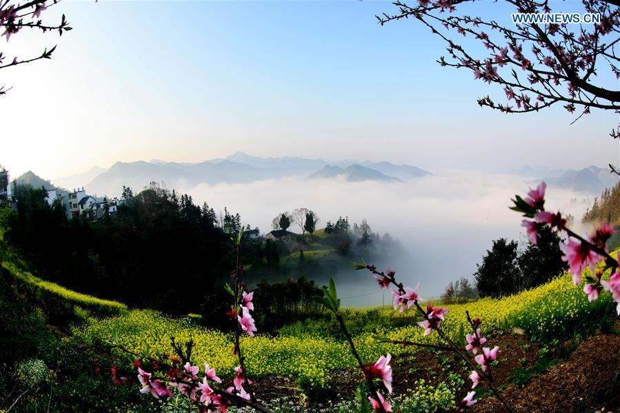 Photo taken on March 28, 2016 shows clouds shrouding the ancient village of Shitan in Huangshan City, east China's Anhui Province. (Photo: Xinhua/Shi Guangde)