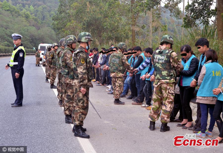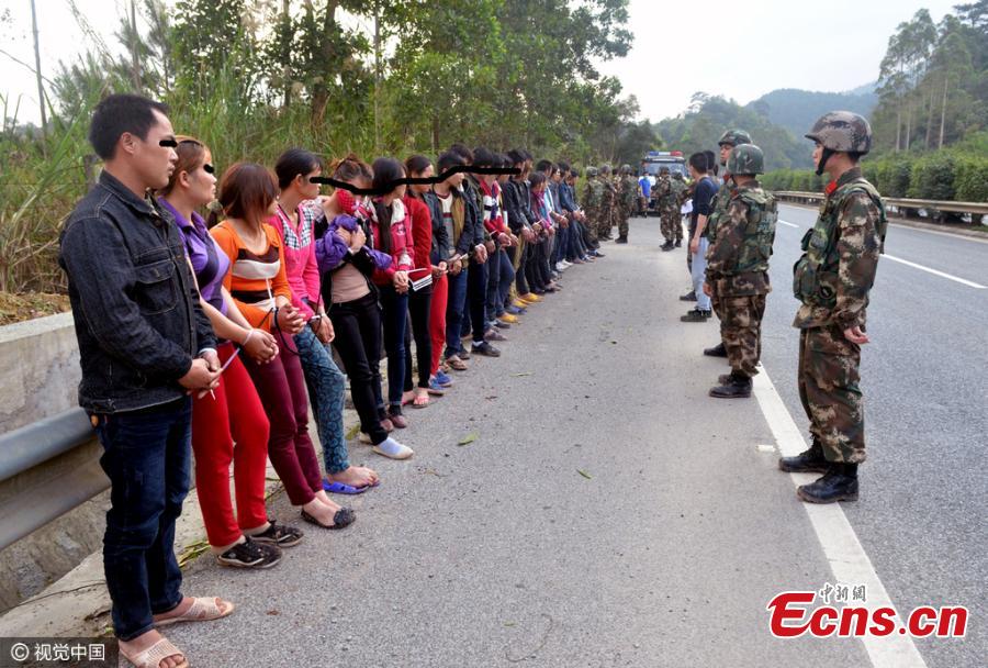 Illegal Vietnamese immigrants are intercepted by border police in Chongzuo city, Southwest China’s Guangxi Zhuang Autonomous Region. Nine organizers and 108 foreigners were seized in Chongzuo, which borders Vietnam, in the raid in March. Police also captured the chief organizer on March 29, ending an international operation that smuggled illegal immigrants to work in the autonomous region and neighboring Guangdong Province. (Photo/CFP)