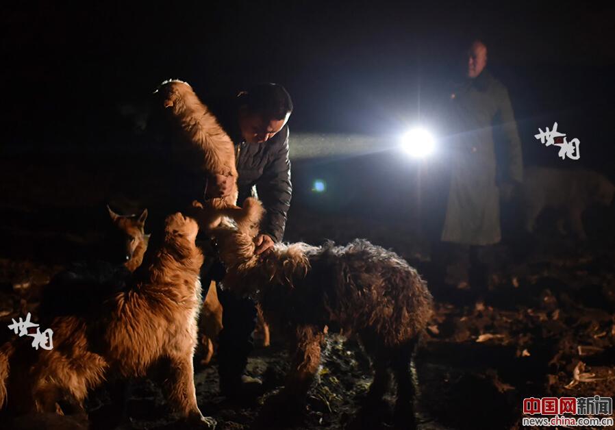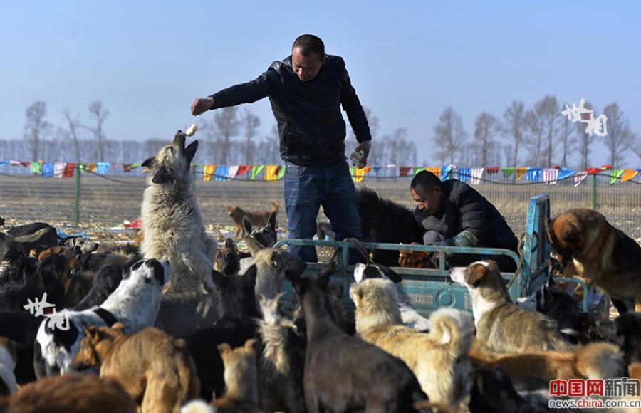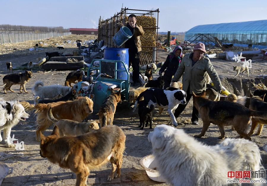 Wang Yan and his father take care of stray dogs at the animal center he built in Helong Town, Changchun in northeast China's Jilin Province. (Photo/China.org.cn).