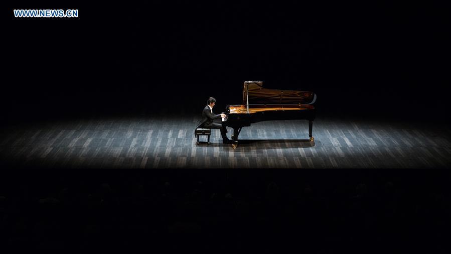 Pianist Li Yundi performs during his 2016 international Chopin recital tour at the "Barvikha Luxury Village" Concert Hall in Moscow, Russia, on March 31, 2016. (Photo: Xinhua/Bai Xueqi)