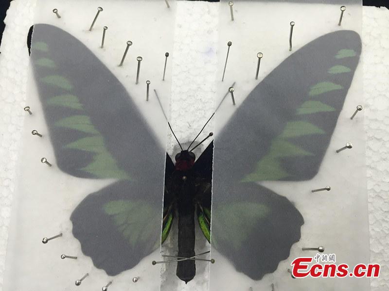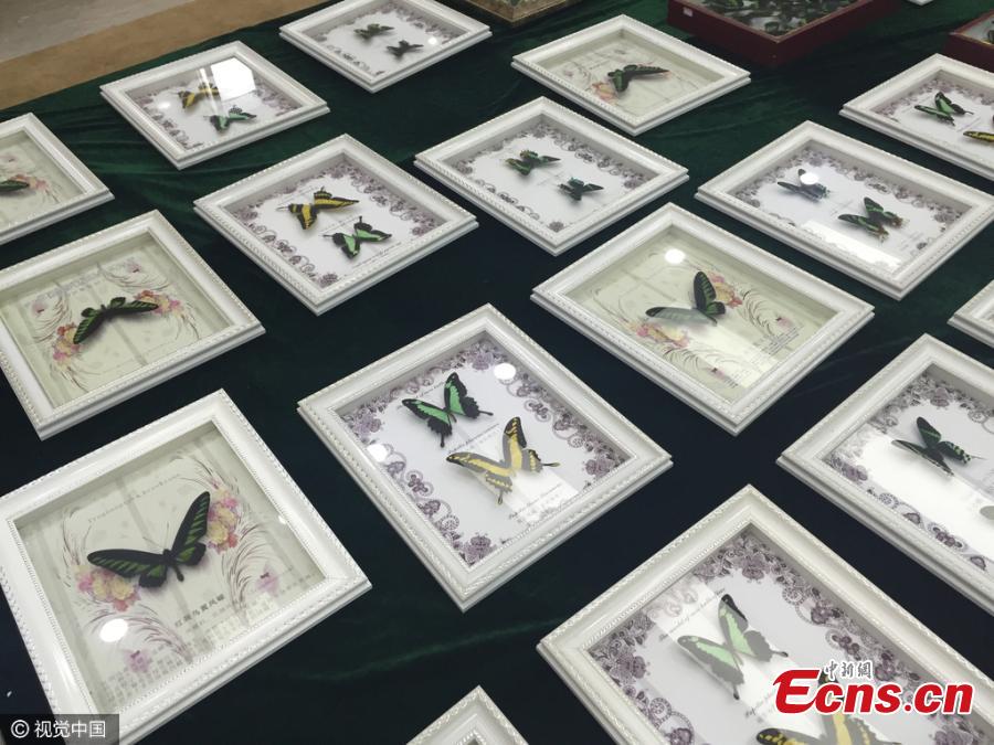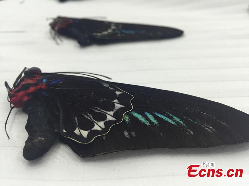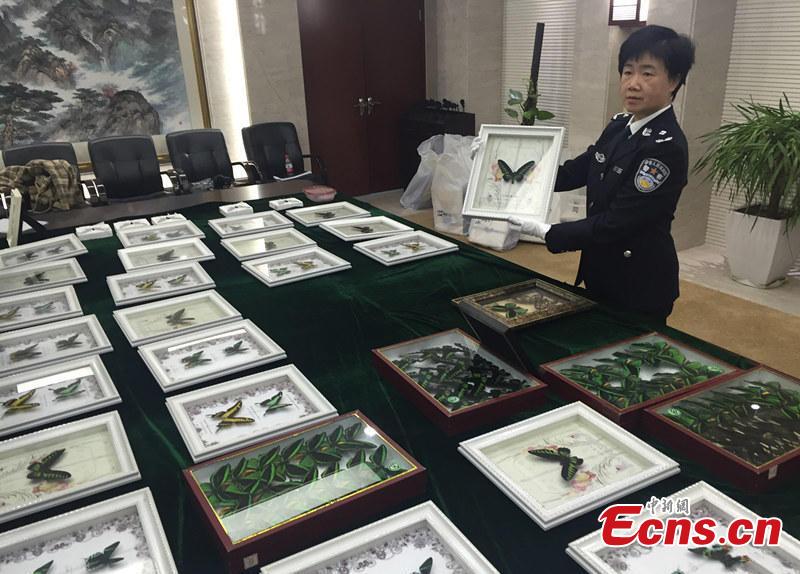 Customs officers in the eastern Chinese city of Jinan confiscated 1,180 endangered butterfly specimens, the General Administration of Customs (GAC) announced on April 5, 2016. The specimens, among more than 2,800 confiscated during investigation, are under the protection of the Convention on International Trade in Endangered Species of Wild Fauna and Flora (CITES). This is the largest confiscation of smuggled endangered butterflies since China joined CITES, according to GAC. (Photo/CFP)