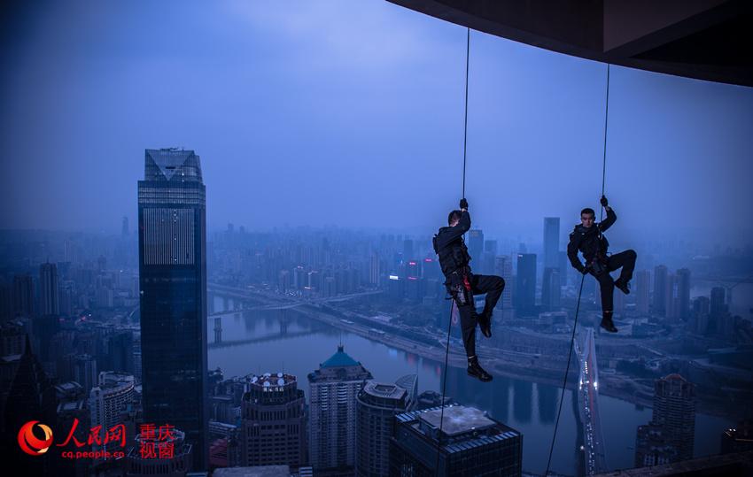 The SWAT team of southwest China's Chongqing releases a group of training photos on April 6, which have become an internet hit. (Photo/people.cn)