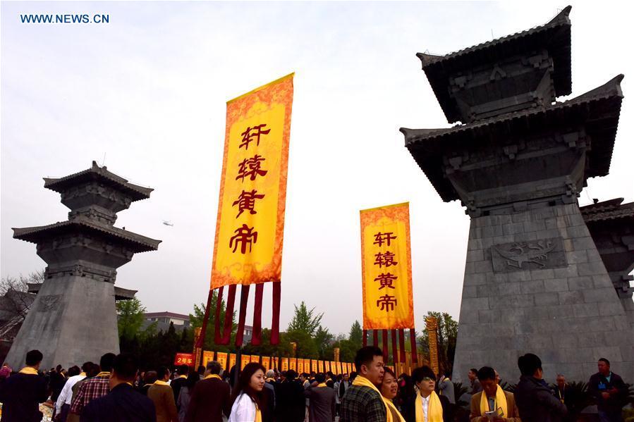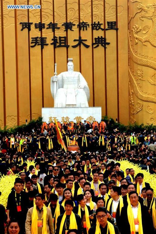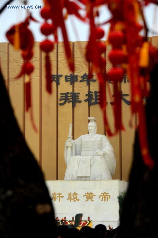 An ancestor worship grand ceremony in honor of Huangdi, the Yellow Emperor, is held at mausoleums in Xinzheng, central China's Henan Province, Huangdi's birth place, on April 9, 2016, the third day of the third month on the Chinese lunar calendar, which is considered the birthday of Huangdi. Huangdi, a legendary hero who lived 4,000 years ago, is considered to be the common ancestor of all Chinese people. (Photo: Xinhua/Zhu Xiang)