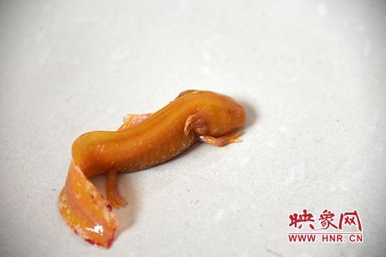 The photo shows an axolotl, a kind of neotenic salamander which was found in a river in Zhengzhou in central China's Henan province. The “water monster” was found in the Jinshui River by two patrolmen in Zhengzhou. The creature was identified as an axolotl by a local pet owner. Thanks to the flamboyant appearance of their gills, which stick far out, axolotls have been described by some people as a "dinosaur fish with six horns." According to the man who identified the animal, it is not difficult to keep axolotls as pets in cold water. Axolotls with pink, orange and black amphibian skin are the ones usually available at pet markets.(Photo/hnr.cn)