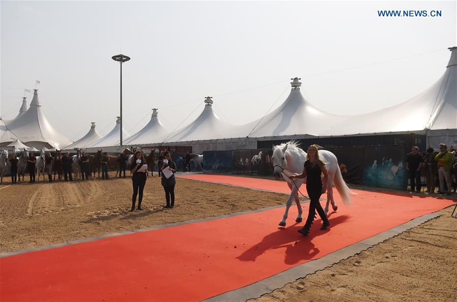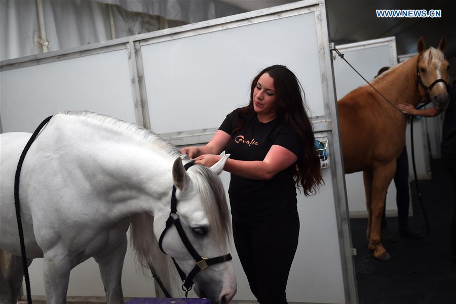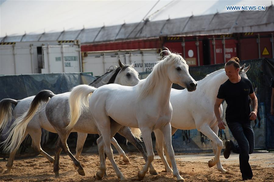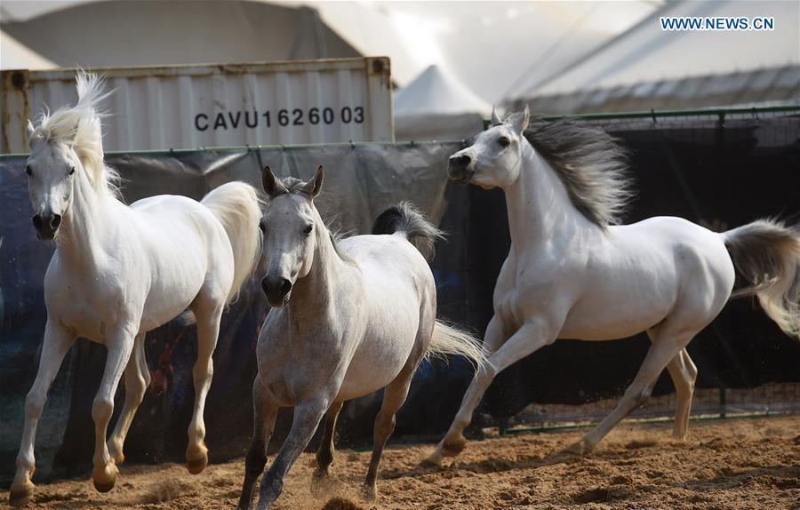 Horses perform during a welcoming ceremony at Chaoyang Park in Beijing, capital of China, April 11, 2016. Forty horses from different parts of the world came to Beijing and will take part in a Canadian horse show "Cavalia" starting on April 28. (Photo: Xinhua/Jin Liangkuai)