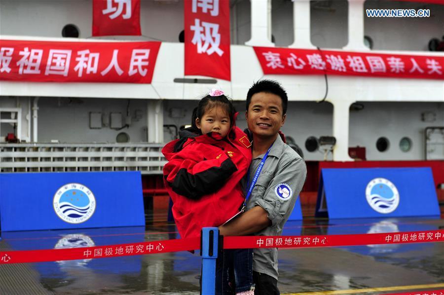 Chinese icebreaker "Xuelong", meaning Snow Dragon in English, is anchored in the dock in Shanghai, east China, April 12, 2016, after conducting the country's 32nd scientific expedition to Antarctica. The icebreaker, carrying a 277-member expedition team, covered about 30,000 nautical miles in the 158-day expedition. (Photo: Xinhua/Zhang Jiansong)