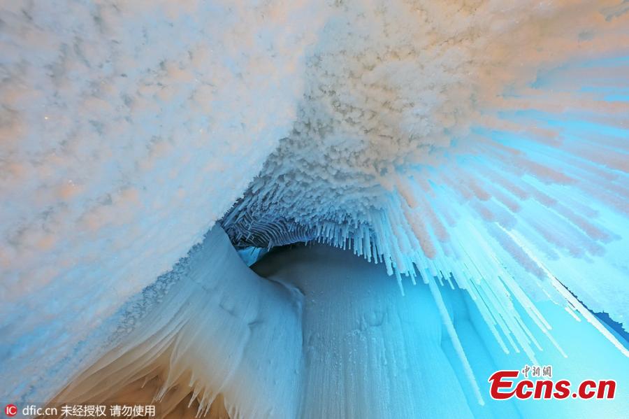 Located 50 kilometers west of Ningwu county, north China's Shanxi province, Luyashan ice cave was formed in the glacial epoch in the quaternary period three million years ago. The climate condition outside the cave doesn't facilitate the form of ice; however, the ice pillars inside the cave never thaw. It is also the biggest ice cave discovered so far in China. (Photo/IC)