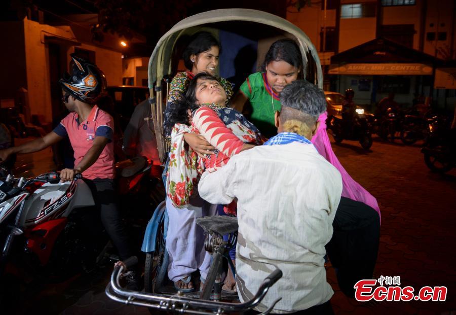 Indian staff at Siliguri Hospital help a victim injured during an earthquake, in Siliguri on April 13, 2016. Strong tremors were felt in southwest China's Tibet Autonomous Region after a 7.2-magnitude quake hit Myanmar on Wednesday.(Photo/Agencies)