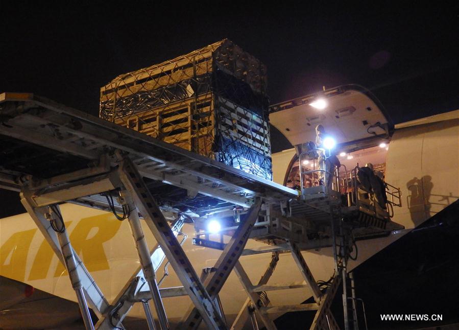 Working staff unload a crate of alpacas at Xinzheng International Airport in Zhengzhou, capital of central China's Henan Province, April 13, 2016. A total of 622 alpacas from Santiago, Chile, landed in Zhengzhou after 27 hours of flight. They will receive a 30-day quarantine before being bred and displayed as ornamental animals in the city. (Photo: Xinhua/Ma Yichong)