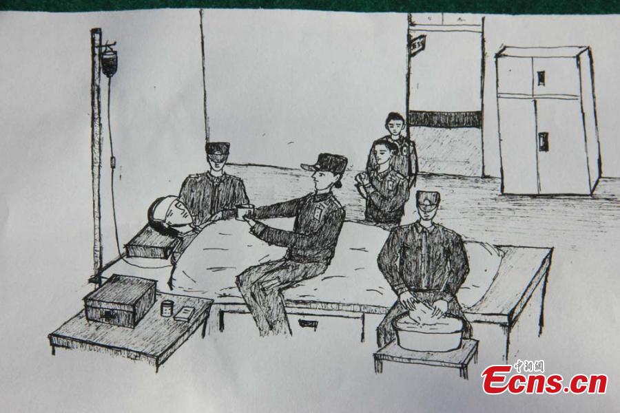 A cartoon depicts the training and life of rookie police officers who will work in prisons in Northwest China’s Xinjiang Uygur Autonomous Region. Several police officers, all of the post-90s generation, created the cartoons together to mark their three-month training. (Photo: China News Service/Wang Xiaojun)