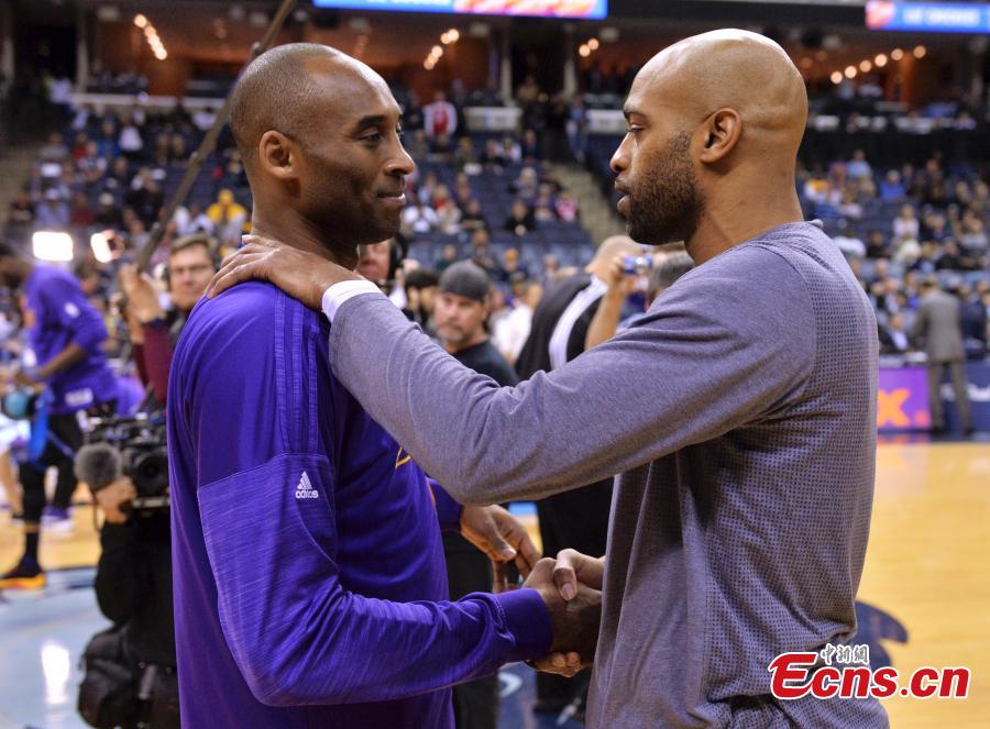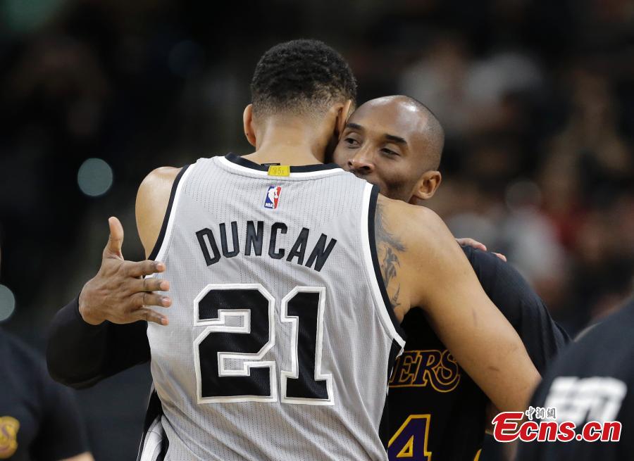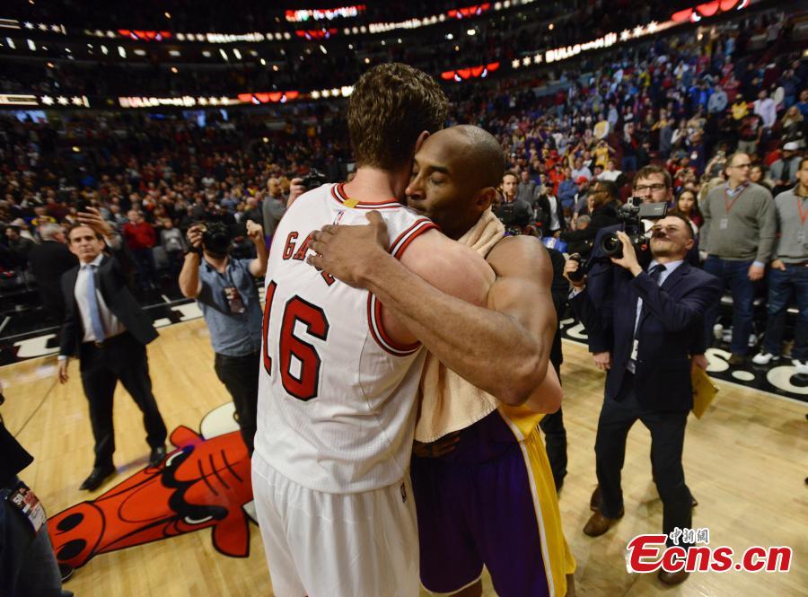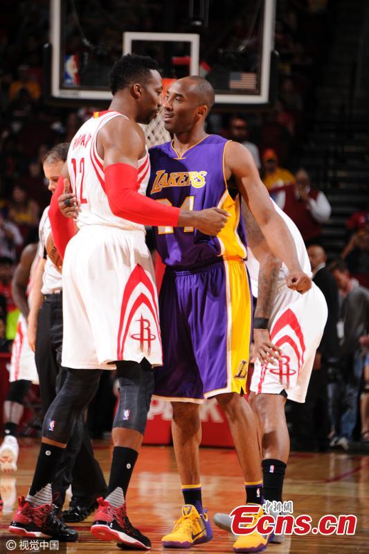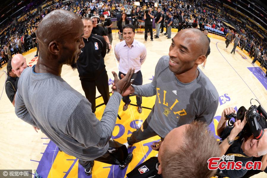 With Kobe Bryant set to end his stellar 20-year career with the Lakers on Wednesday, April 13, 2016, Los Angeles was buzzing at the prospect of seeing one of the all-time National Basketball Association greats bow out. Kobe Bryant will play his final NBA game ever against the Utah Jazz at the Staples Center. At 37, he has played his entire career with the Los Angeles Lakers, winning five championships. Following are some selected photos of Kobe Bryant and other players. (Photo provided to China News Service)