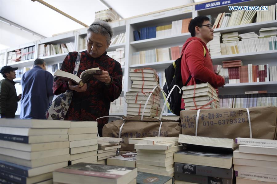People select books at a book fair in Chaoyang Park in Beijing, capital of China, April 15, 2016. The 2016 Beijing Book Fair opened here on Friday. (Photo: Xinhua/Ju Huanzong)