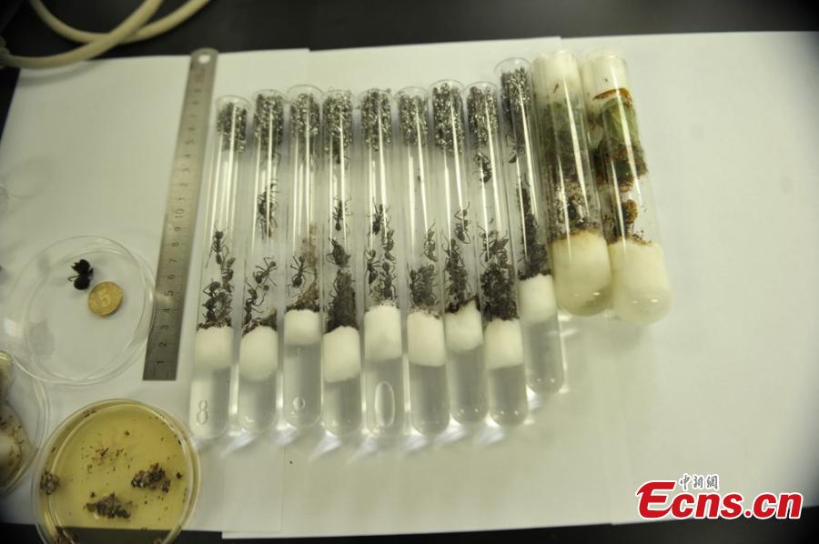 Live ants are found inside express packages of electronic components from Germany at Chengdu Airport Port in Chengdu City, capital of Southwest China’s Sichuan Province, April 18, 2016. The inspection and quarantine bureau of Sichuan Province said the 45 ants consisted of two species, with one harmful to crops. The port also reported having found live ants from German express packages in the past. (Photo: China News Service/Zhong Xin)